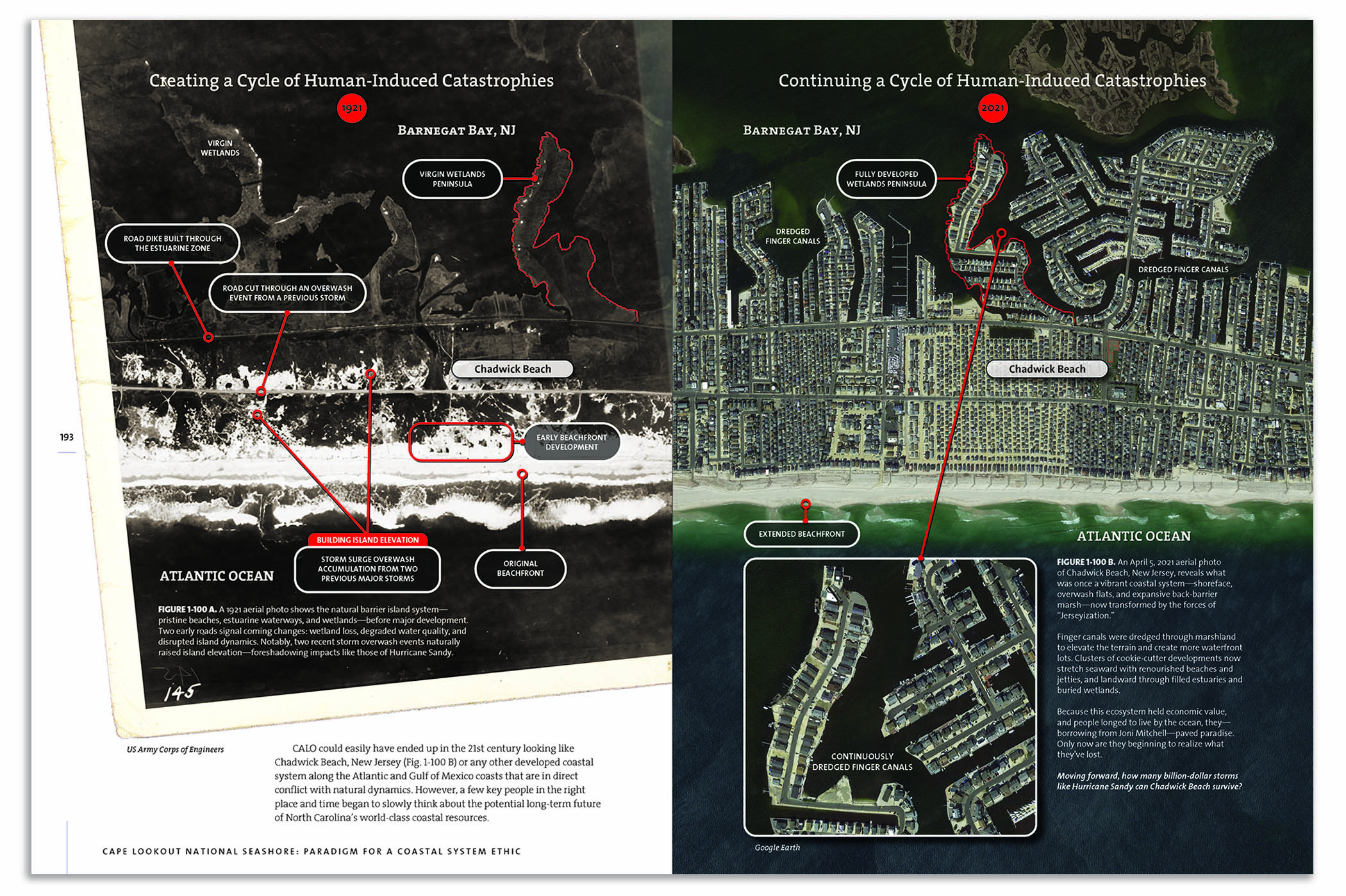 Cape Lookout National Seashore: Paradigm for a Coastal System Ethic is produced by North Carolina Land of Water [NCLOW] and is printed in a lush 12″ x 9″ format that opens wide like a coffee table book. With over 300 illustrations, it’s a testament to the beauty and resilience of Core and Shackleford Banks, their islands, waterways, wildlife, and people. Stan Riggs shows us why Cape Lookout is the world’s model for living with constant coastal change, and he gives us a new vocabulary with which to better understand how and why it all works so efficiently when left to its natural ways.